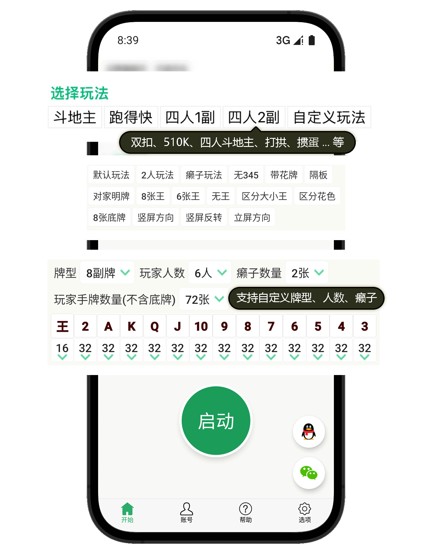 斗地主 · 跑得快 · 双扣 · 掼蛋 ·